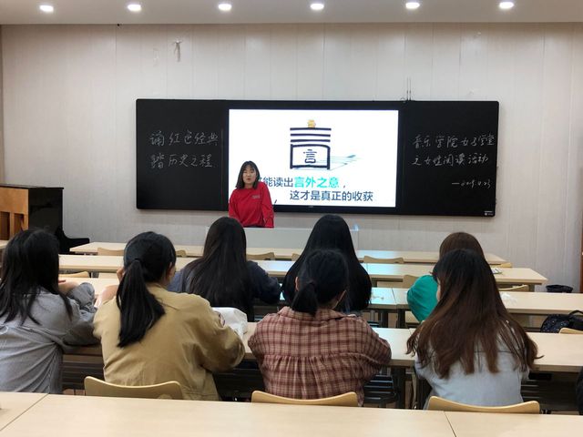 4月23日世界读书日之际,音乐学院在102教室开展了“诵红色经典,踏历史之程”女子学堂之女性阅读活动。音乐学院学工办副主任章洁和近20名女生参加活动,活动由分团委学生会学习部部长张文义主持。