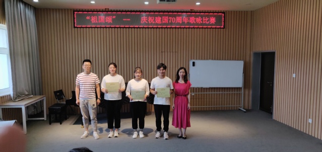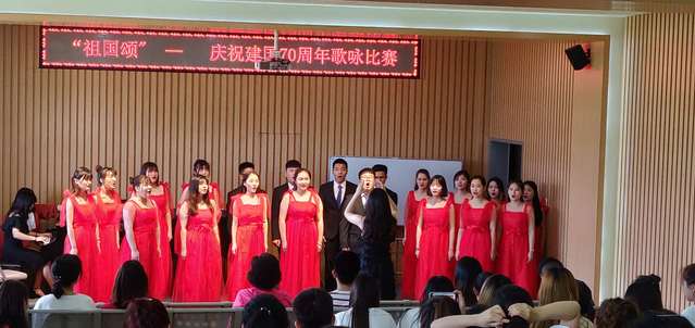红歌唱响延安精神,党旗飞扬百年辉煌。5月28日中午,音乐学院“祖国颂”——庆祝建国70周年歌咏比赛在304观摩厅举行,学院关工委常务副主任陈泓茹教授及胡梦婧、杨孝帆,李翔宇、杨诗铃等老师应邀担任评委,音乐学院党总支书记潘红、学工办副主任章洁和2018级、2017级学生参加此次比赛,观摩厅里座无虚席。