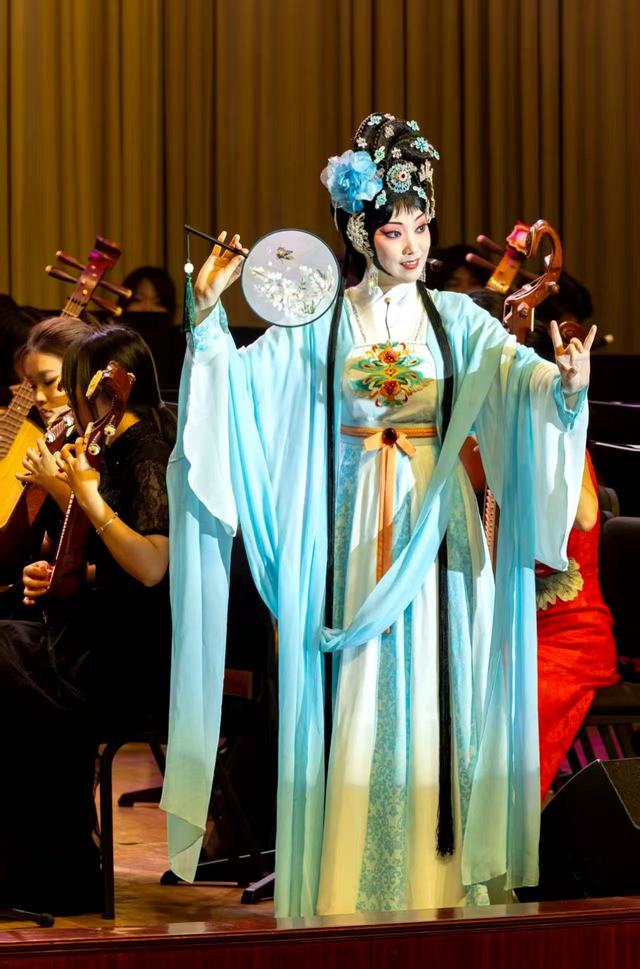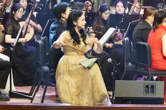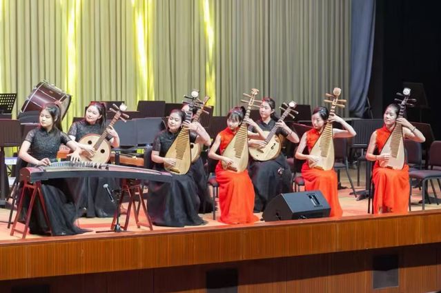 音乐会在热烈的掌声中启幕。南京晓庄学院音乐学院民乐团为现场师生呈现了十首风格多元的经典与新创民乐作品。曲目安排匠心独具,既有渲染节日喜庆氛围的《金蛇狂舞》,也有由晓庄学子独唱、教师京胡伴奏,与民乐团共同演绎的戏曲选段《梨花颂》;既有晓庄师生分别携手民乐团奏响的协奏曲《云南回忆》第三乐章与《云想花想》,也有由两个室内乐组合精彩呈现的《敦煌》与《秋岭枫红》。演奏者们凭借精湛的技艺与饱满的情感,生动诠释了民族音乐的独特韵味与丰富表现力。旋律时而高亢激昂,时而细腻婉转,深深感染了每一位在场师生。最终,音乐会在《花好月圆》洋溢的欢愉与温馨中圆满落幕。