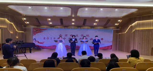 以习近平新时代中国特色社会主义思想为指导,通过广泛开展中华经典诵读、书写、讲解等文化实践活动,引导广大青年学生亲近中华经典,热爱祖国语言文字,提高语言文字规范意识,自觉弘扬中华优秀传统文化,为庆祝新中国成立70 周年,建设“强富美高”新江苏凝聚力量。我院推荐三组选手参加校赛,最终张正涛、晁玉琦、张忆君、顾天熠四位同学获得晋级卡,并在2019年5月初校赛赢得三等奖进入省赛资格,经过学院老师的培训和校组委会的支持以及学生们的努力下,同年9月,最终赢得江苏省“中华经典诵读大赛”大学生组二等奖。