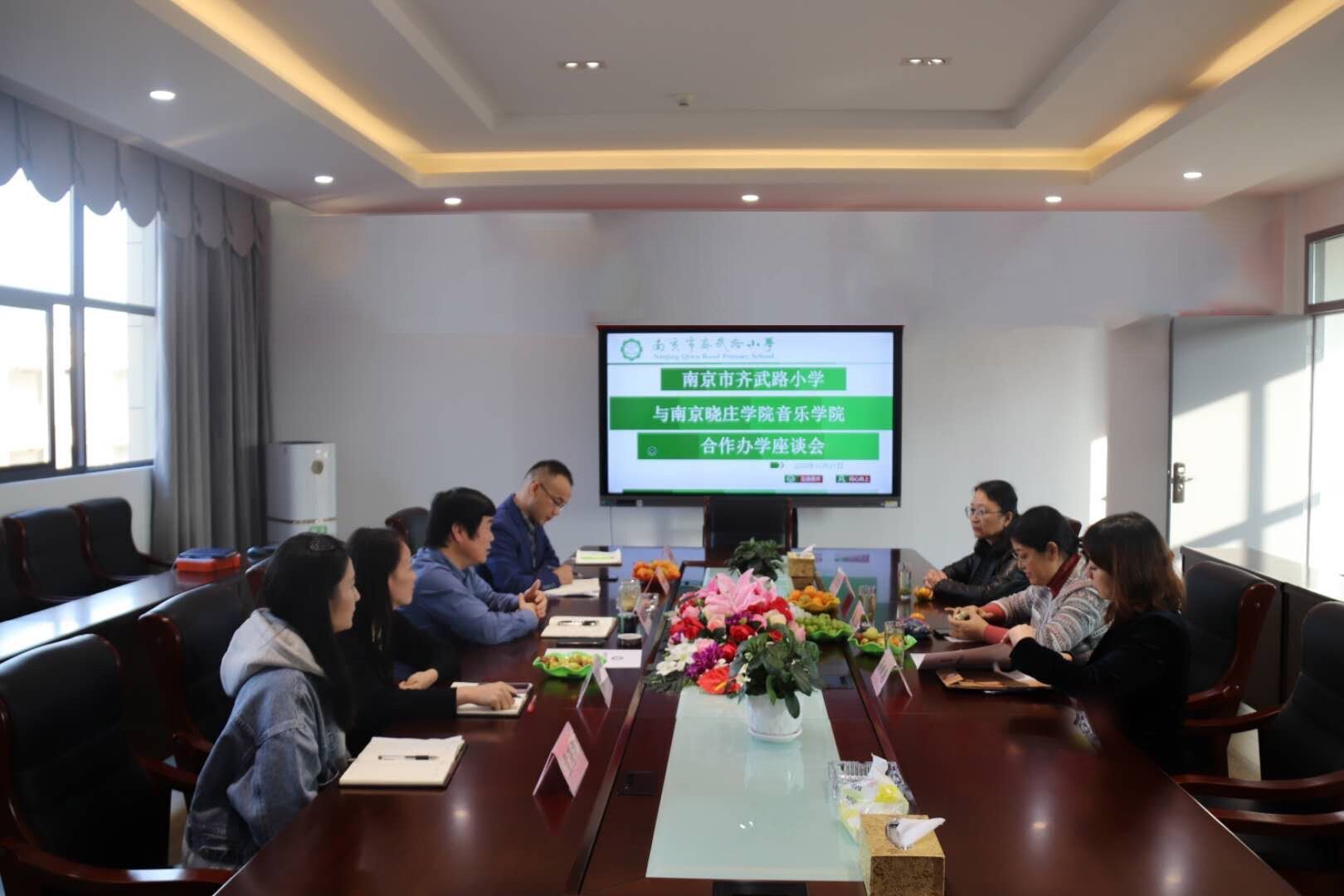 为加强小学音乐教学与高校师范类专业的密切联系,搭建小学教育专业成长的平台,20201021日,音乐学院与南京市齐武路小学合作共建教育实习基地签约仪式在齐武路小学会议室举行。音乐学院党总支书记潘红、音乐教育教研室主任黄琼瑶教授、教务办副主任周新慧、齐武路小学校长陶礼宾、副校长朱海林、教务主任陶南、音乐组教师黄海洋等参加签约仪式。