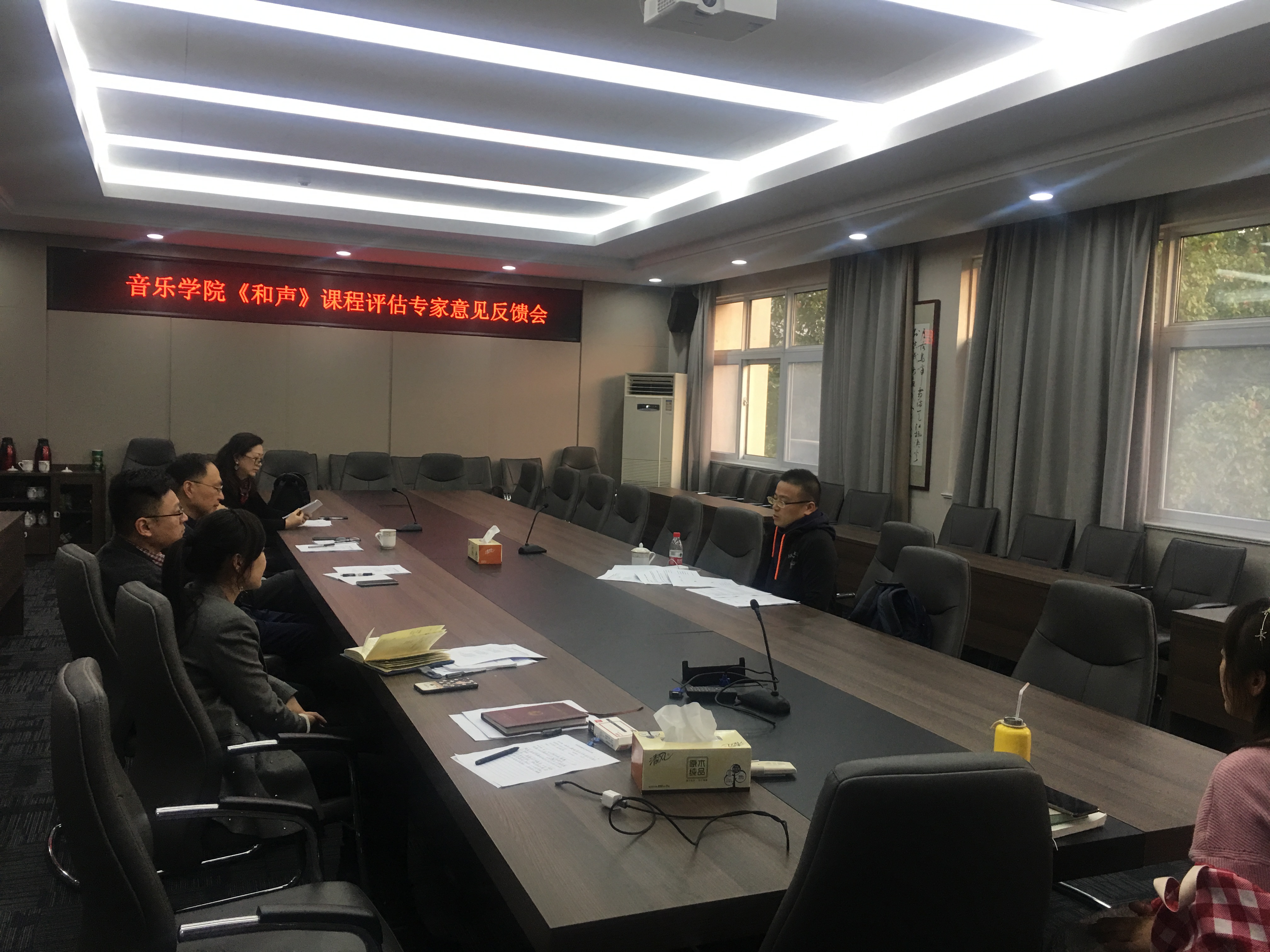 为了进一步提高课程建设水平,完善我院教学质量保障体系。11月5日-6日,音乐学院邀请中央音乐学院张征教授对《和声》、《即兴伴奏与自弹自唱》两门课程进行课程评估。张征教授与学院教学委员会老师一起听了陈晓光、朱玫玫、李梅、励君玉几位老师的授课。他对两门课程的课程大纲、教案等材料进行了分析,并对几位教师的授课予以反馈。他从课程设置的培养目标、难易度等方面做了讲解,同时建议音乐学师范专业的课程内容要相对打通,明确学生的发展方向和就业定位,为切实培养中小学音乐教师制定适宜的人才培养模式。