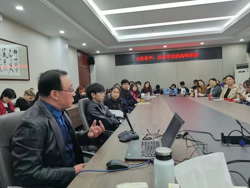 11月12日下午,南京艺术学院博士生导师刘承华教授应邀来我校作了题为《大音希声:音乐审美的高峰体验》的学术讲座。讲座由音乐学院吴晓勇院长主持,音乐学院部分师生聆听了讲座。