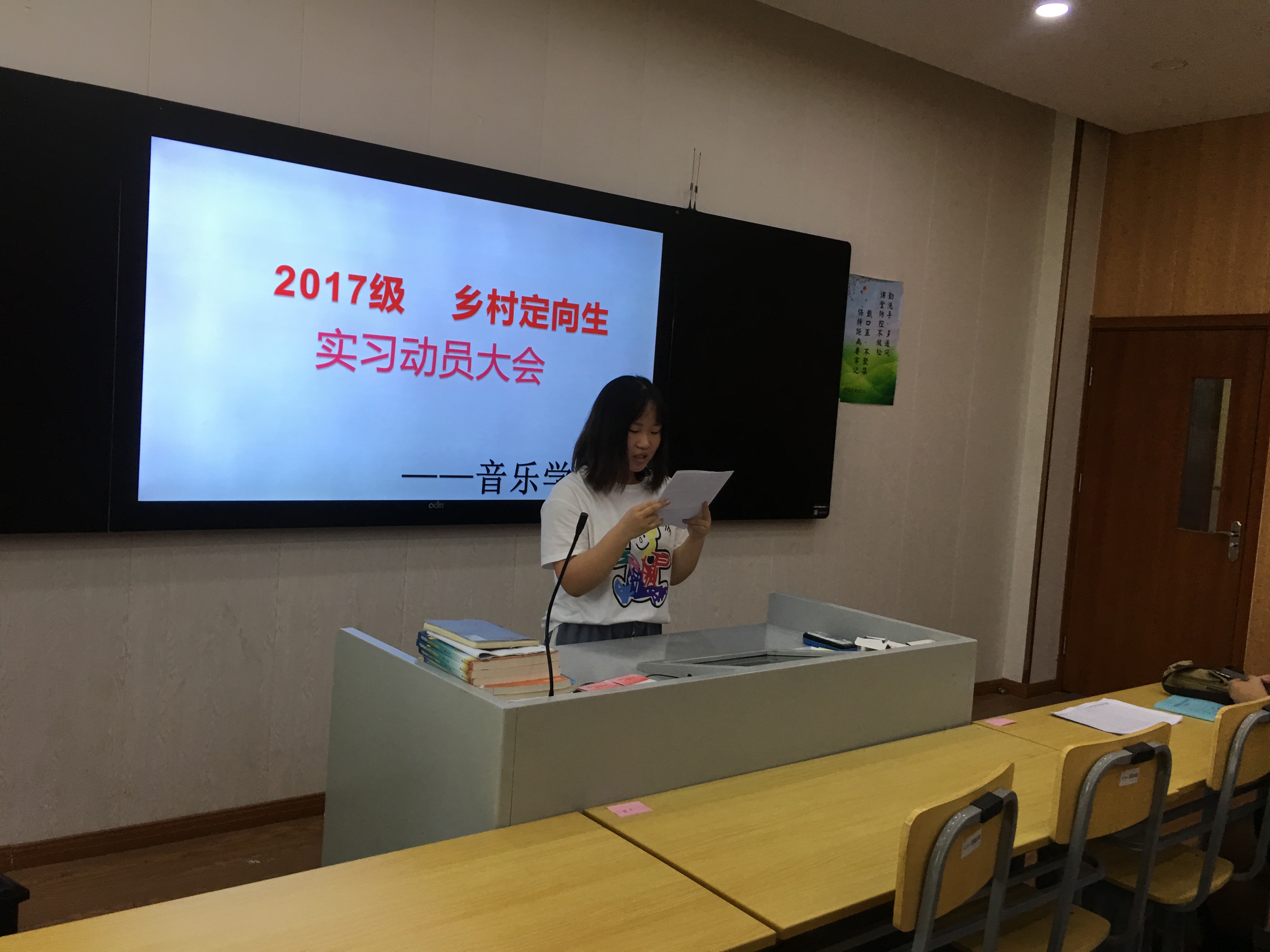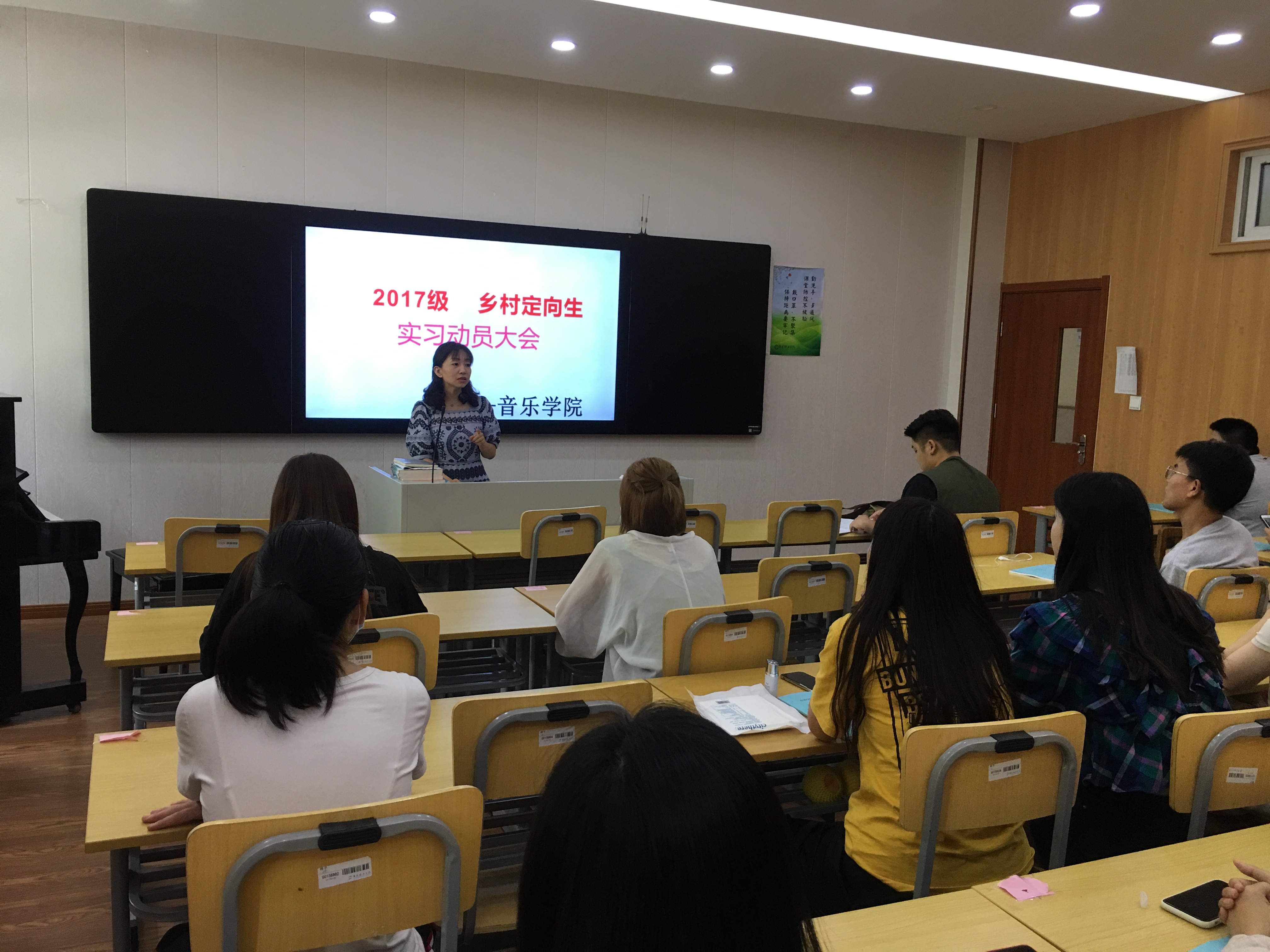 7月10日下午,音乐学院2017级乡村教师定向生实习动员大会如期举行。学院于晓晶副院长、指导教师代表张馨老师、16师范3(定向)班全体同学及教务办相关老师参加。