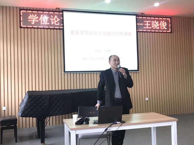 4月25日下午,南京艺术学院王晓俊教授应邀来我校作了题为《音乐学学位论文选题与写作漫谈》的学术讲座。讲座由音乐学院吴晓勇院长主持,音乐学院部分师生聆听了讲座。